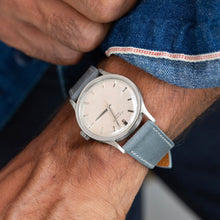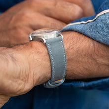 This beautiful colour has so many subtle tones to it. The colour is a light grey with a very slight hint of blue. A stunning and very striking strap, especially when paired with a steel case and white dial. However, changes the look of the strap completely when worn with a gold case, brings a warm tone to the strap that looks devine. All straps taper to a 16mm buckle except 22mm which tapers to 18mm.