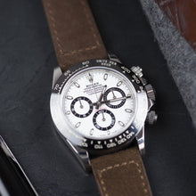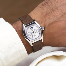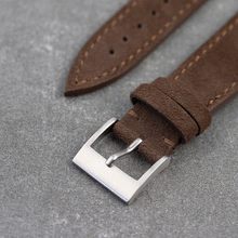 One of the main reasons for producing a collection with tone on tone stitch was this colour. We’d had a number of requests for matching thread on a chocolate brown strap, which convinced us to role it out across the entire suede collection. Classic allrounder that works with so many watches and outfits. All straps taper to a 16mm buckle except 22mm which tapers to 18mm.