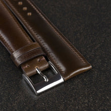 This rich dark cognac strap is the go to strap for wearing with tool watches such as submariners and speedmasters, but also an excellent choice for gold cases especially dress watches such as an iconic reverso. A great all rounder that offers plenty of choices. All straps taper to a 16mm buckle except 22mm which tapers to 18mm.