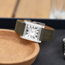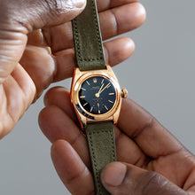 We all love green straps and for good reason. The colour is contemporary cool and can be worn with so many different watches and outfits. We do like to see this strap with gold pieces but it’s equally at home with tool watches both vintage and contemporary. Getting the colour right is half the battle with green and this strap has that military khaki green that we all love. All straps taper to a 16mm buckle except 22mm which tapers to 18mm.