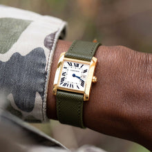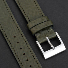 Discover our exclusive Military Green Saffiano leather watch strap, a perfect blend of timeless elegance and contemporary styling. This luxurious strap features the distinctive cross-hatch texture of premium Saffiano leather, renowned for its exceptional durability and sophistication.