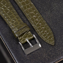 A worthy addition to our alligator collection and signals a widening of our green offerings. A perfect shade of olive, with a light touch that gives the strap a more relaxed weekend feel. Easy to wear on a tool watch such as a modern Daytona or Speedmaster and equally at home on a precious metal dress watch.