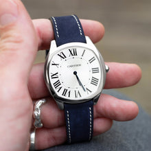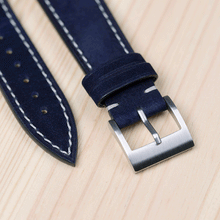 We do sell a lot of blue straps as it such an easy colour to match with clothes as well as watches. The darkness of the colour allows the dial to really pop and the strap stays somewhat under the radar. We’ve been asked many times to produce a blue nubuck strap and after a number of attempts to get the colour right, we finally settled on this rich dark blue that is only enhanced by the very nature of Nubuck and the nap that makes the strap feel so luxurious. All straps taper to a 16mm buckle except 22mm which tapers to 18mm.