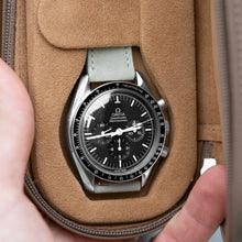A delicate light pastel shade that comes from our long line of green straps. Meant to be worn on a relaxing weekend with friends and a perfect way of dressing down a serious gold piece. The colour is a little playful but packs a surprising pop on the wrist.