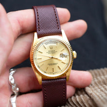 Named after the eponymous village in Bordeaux, inspired by the ruby red wines of the historic region, our St. Émilion Saffiano strap is truly an inspired colour and a strap for the connoisseur. Tasteful and elegant come to mind when it's paired with your favourite Reverso or a complicated Patek. All straps taper to 16mm at the buckle except for the 22mm strap that tapers to 18mm.