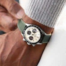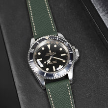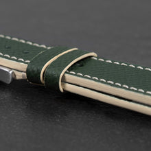 Our Hunter Green strap proved to be the perfect foil for our cream edging. The contrast is just enough to make the edge and the stitching really pop not to mention that this shade of subdued green works so well. Our Two Tone treatment has created a fresh, elegant strap that would look equally at home on a Cartier or a chunky sports watch.
