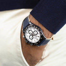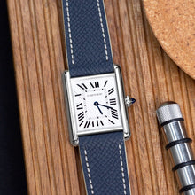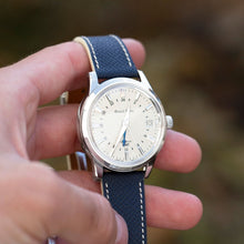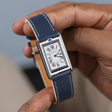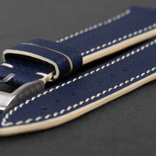 The contrast between the dark tone of our Navy Blue and the light freshness of the off white edge paint is an irresistible combination. Adds a real presence to the wrist and also brings out that wonderful stitch detail.