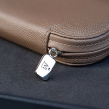 It’s beautifully presented in a Grained Taupe calf skin and matching tone on tone stitching. The interior is finished in a camel Alcantara®, which is far more durable and resilient than suede. We chose to use a smooth, high quality colour matched coil zip. However, it was important to us to design the case with the zip concealed as it enhanced the aesthetic and made for an elegant look. The finishing touch was a polished stainless steel zip pull.
