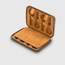 Inside, eight precision-cut 12mm recesses accommodate watches up to 46mm (including crown), each secured with dedicated snap closures. The interior is finished in premium pecan Alcantara®, far more durable and resilient than traditional suede.